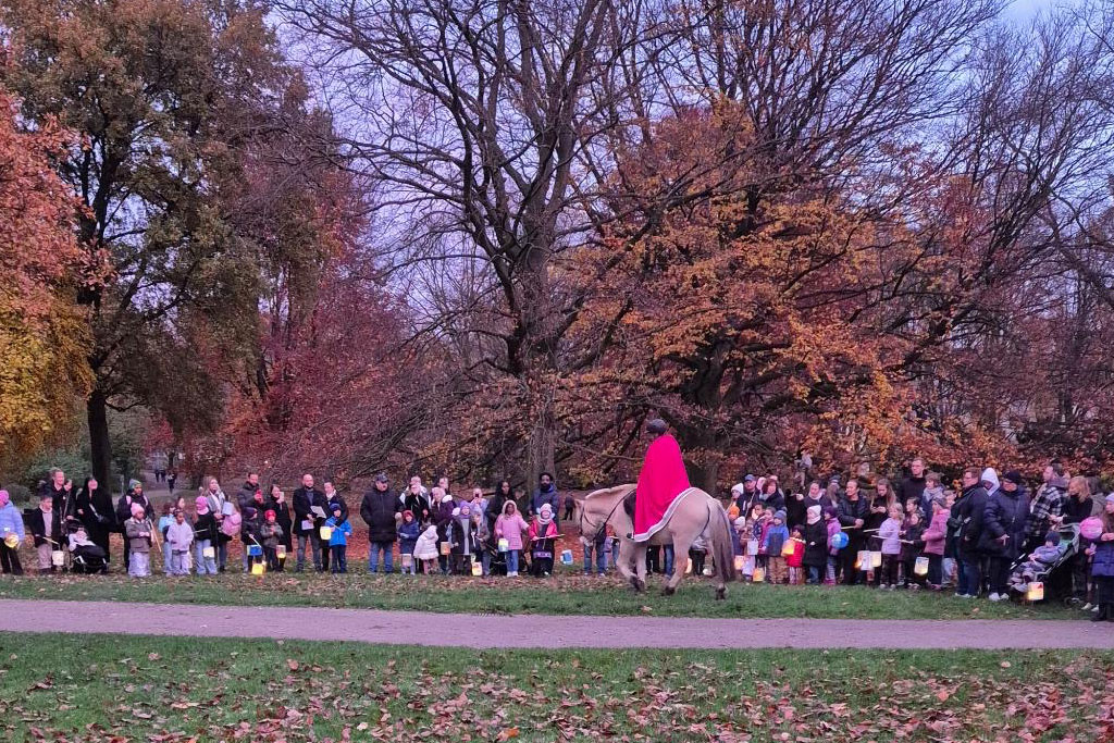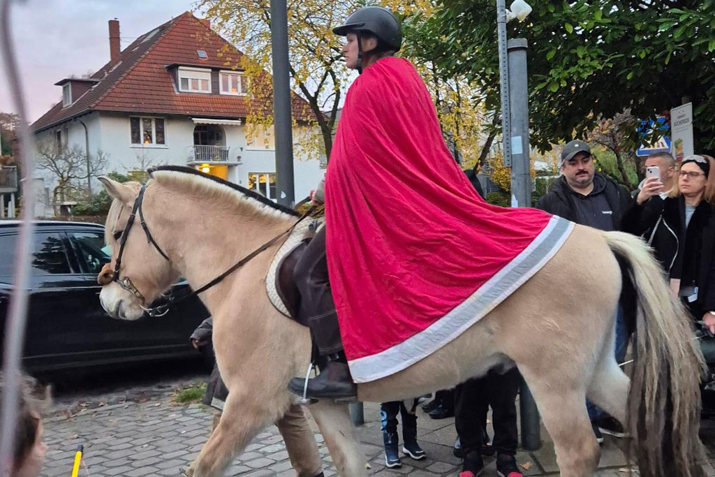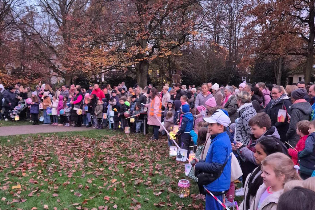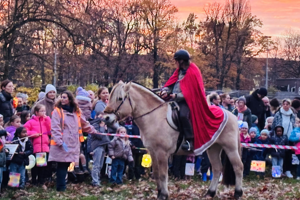 Letzten Mittwoch (12.11.25) fand unser traditionelles Martinsfest statt. Viele Kinder aus der Schulgemeinschaft, der Kita und dem Stadtteil waren der Einladung der Schule gefolgt. Nach einem Martinsspiel in der Kirche ging es mit Martin auf einem Pferd vorweg durch den Hammer Park. Anschließend trafen sich alle zum gemeinsamen Weckmännchenteilen am Lagerfeuer.
