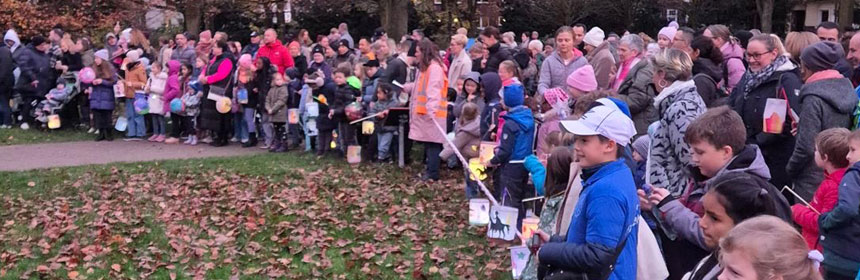 Letzten Mittwoch (12.11.25) fand unser traditionelles Martinsfest statt. Viele Kinder aus der Schulgemeinschaft, der Kita und dem Stadtteil waren der Einladung der Schule gefolgt. Nach einem Martinsspiel in der Kirche ging es mit Martin auf einem Pferd vorweg durch den Hammer Park. Anschließend trafen sich alle zum gemeinsamen Weckmännchenteilen am Lagerfeuer.
